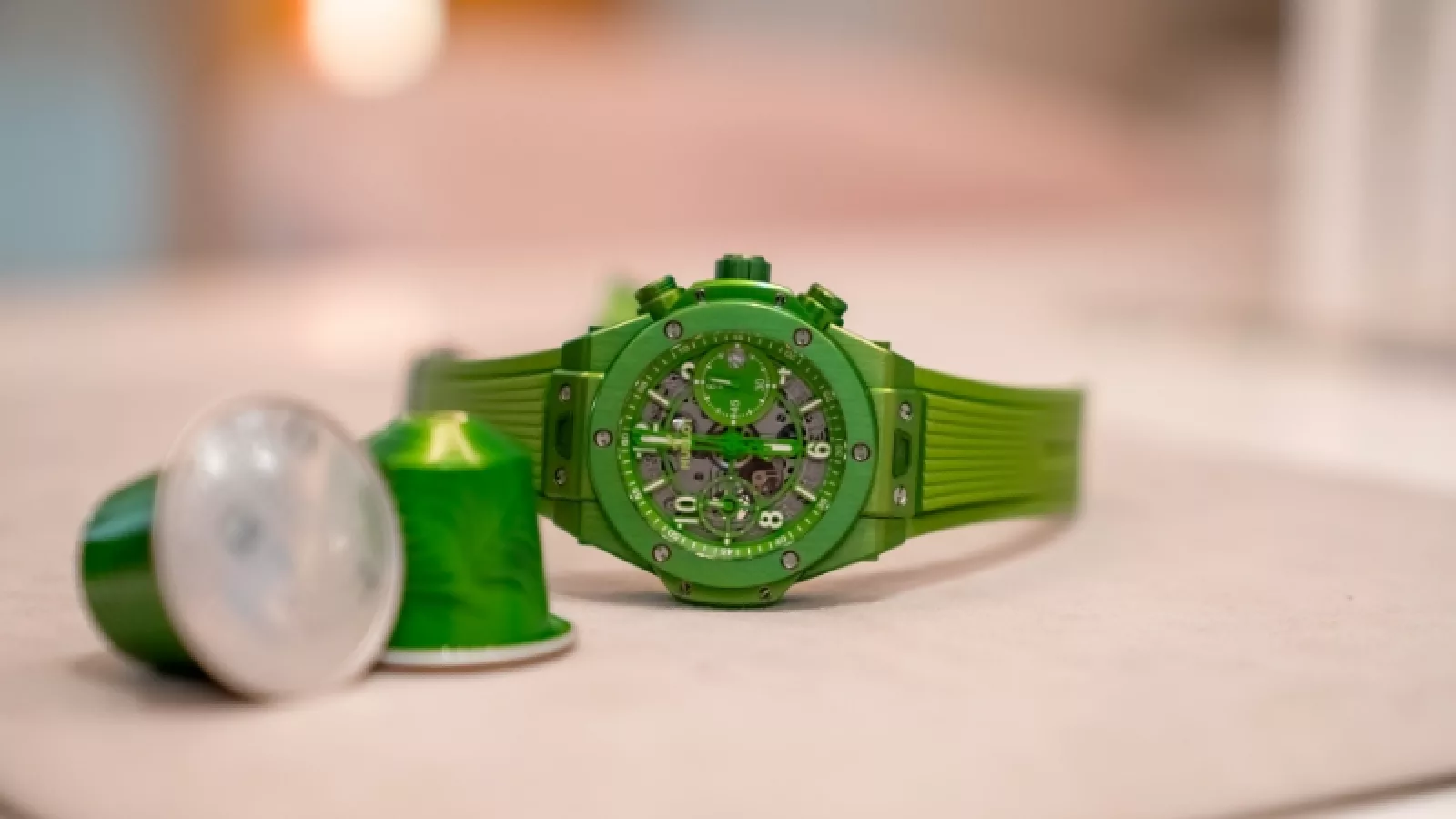 Se trata de un reloj simbólico: al crear el Big Bang Unico Nespresso Origin, Hublot y Nespresso han demostrado que es posible añadir valor a las materias primas recicladas y que la circularidad no tiene límites.