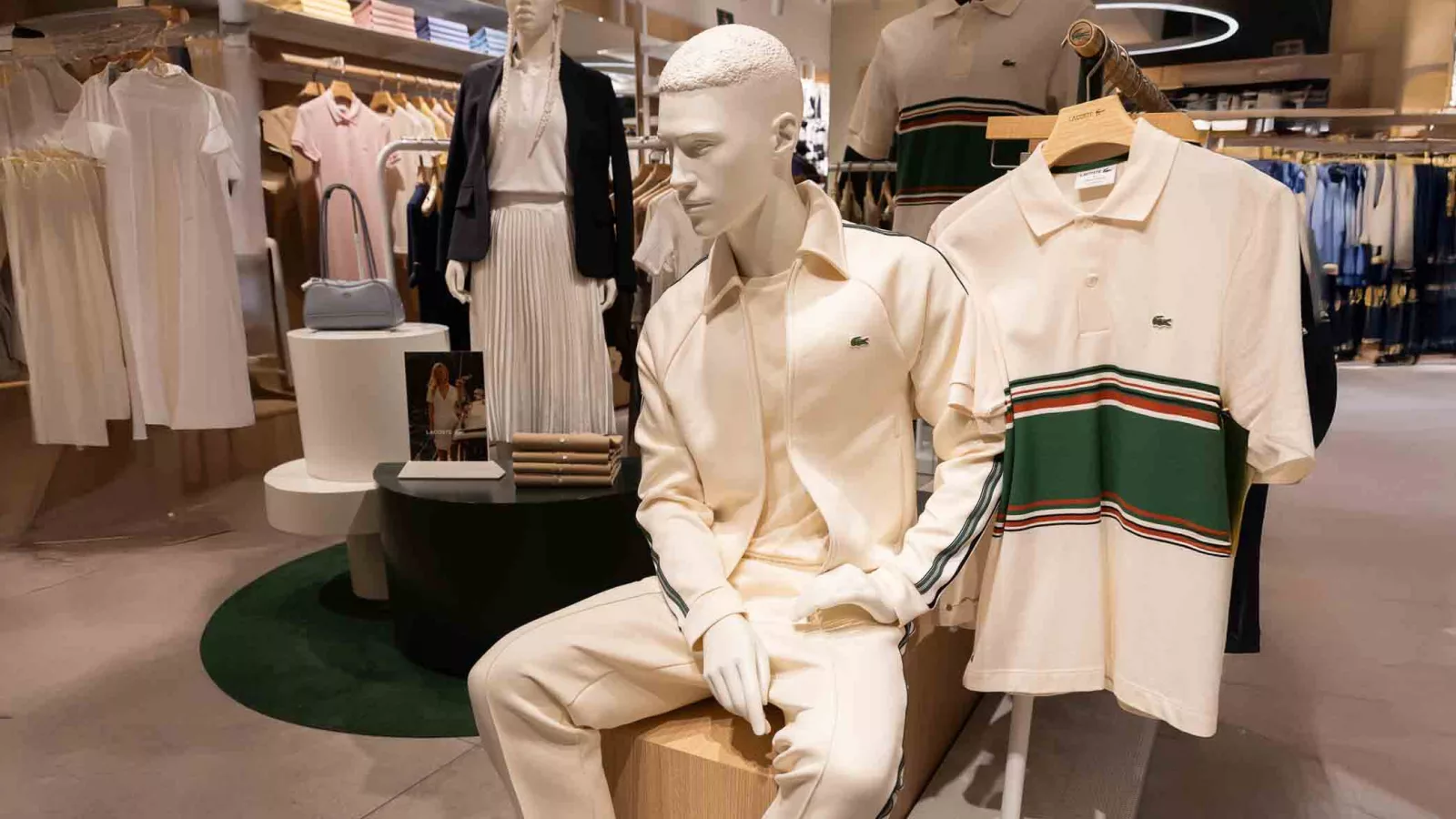 El nuevo espacio, luminoso y minimalista, combina la elegancia natural del diseño francés con la calidez relajada de Carrasco. Maderas claras, líneas puras y una paleta neutra en tonos arena y verde icónico hacen del entorno un reflejo perfecto del ADN Lacoste: sofisticado, deportivo y atemporal. Cada detalle —desde la iluminación que realza las texturas hasta los espejos que amplían la perspectiva— está pensado para crear una atmósfera de diseño integral, donde la moda y la arquitectura dialogan.