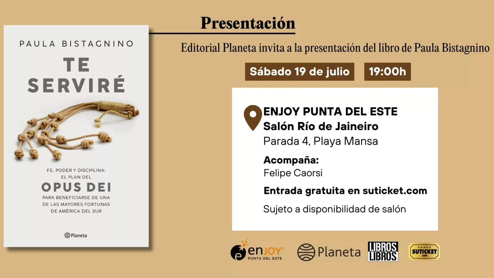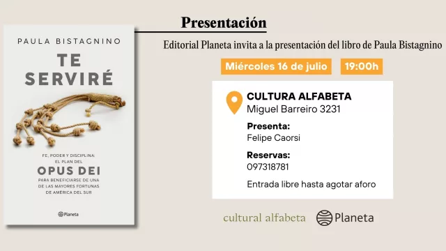 La presentación en Montevideo será el miércoles 16 de julio a las 19 h en el Cultural Alfabeta (Miguel Barreiro 3231), con la participación del periodista Felipe Caorsi. La entrada es libre hasta agotar aforo, con reservas al 098 731 8781. En Punta del Este, la charla será el sábado 19 de julio a las 19 h en el hotel Enjoy (Salón Río de Janeiro, Parada 4 de Playa Mansa), también con entrada gratuita, disponible en suticket.com.
