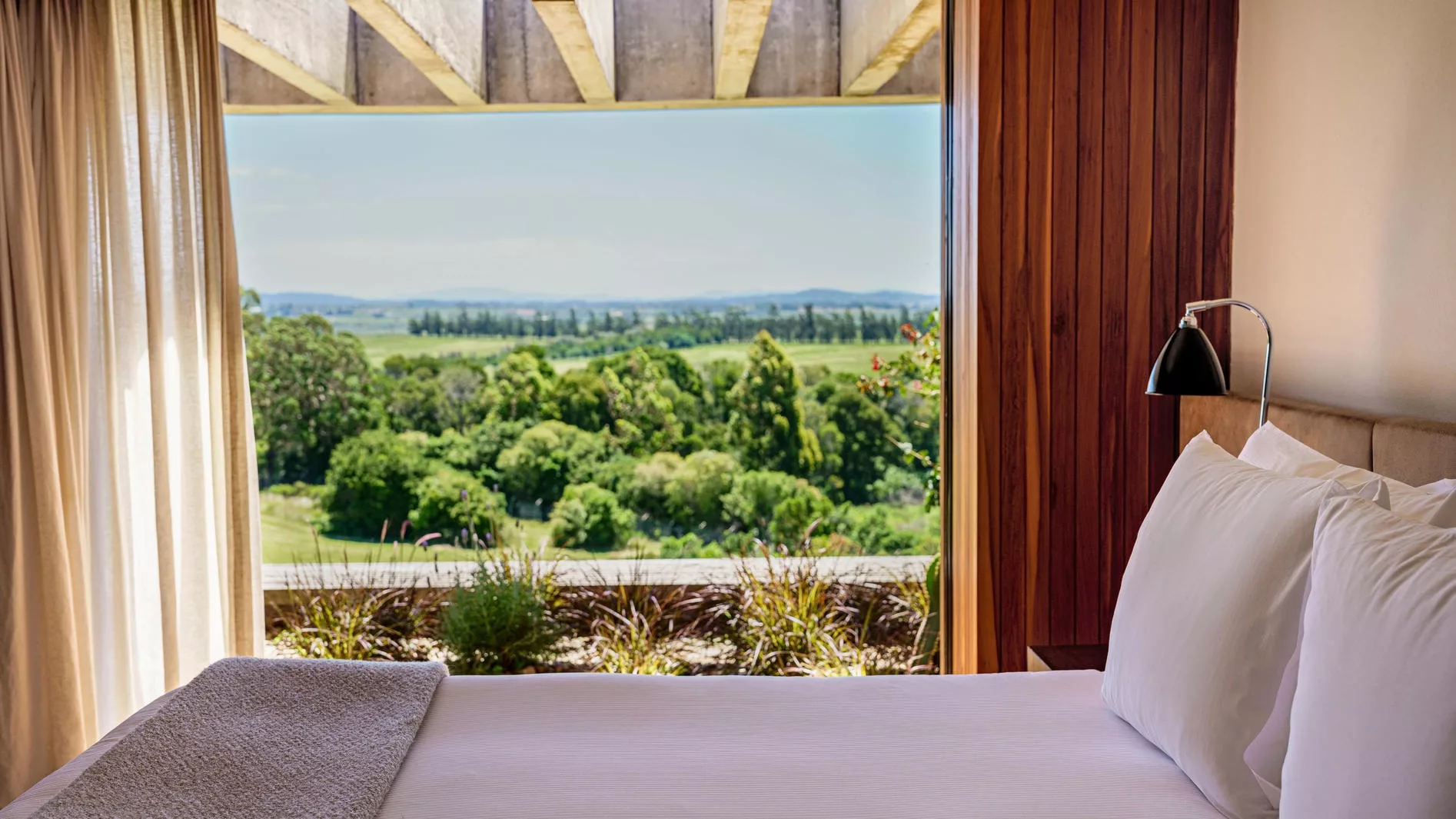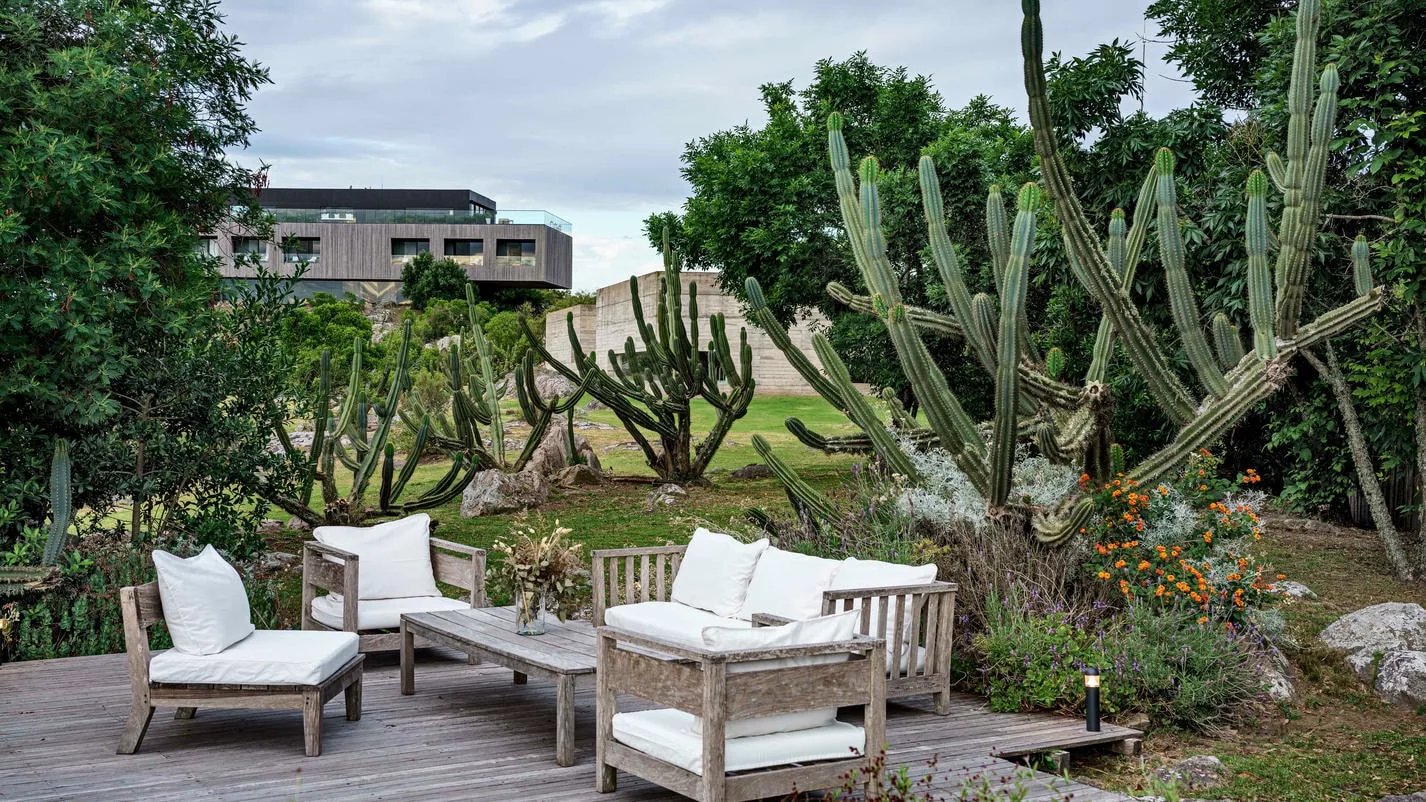 Ubicado a minutos de La Barra, en lo alto del Cerro Egusquiza, el hotel se asienta sobre una antigua estancia de 480 hectáreas con una de las vistas más impactantes de la zona. “Desde la primera vez que vine a Punta del Este, me quedé fascinado con el lugar. Es uno de los sitios más lindos que he visto en mi vida”, dice Gero Fasano, sintetizando el espíritu que atraviesa cada rincón del proyecto.