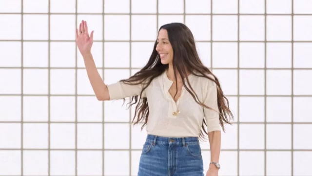 Uno de los grandes aciertos de la colección fueron los vaqueros blancos de cintura alta y ligeramente acampanados. Este clásico renovado se convertirá en un must para la primavera, combinado con sandalias nude y joyas doradas. El resultado es un look minimalista y sofisticado que encapsula la esencia de Chloé.