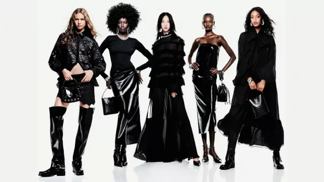 El recorrido por la colección otoño 2024 de H&M transporta al espectador al romanticismo de la era barroca, pero con un enfoque firmemente arraigado en el presente, exhibiendo una actitud tremendamente moderna. Largas líneas en trajes de poder y leggings contrastan con el volumen ondulante en dobladillos con volados, blusas extragrandes con cuello anudado y jeans de pierna ancha. La transparencia, empleada de manera sensual y con piezas de lencería, junto con la elegante piel sintética y los detalles decorativos, crea un aspecto estilizado y opulento.