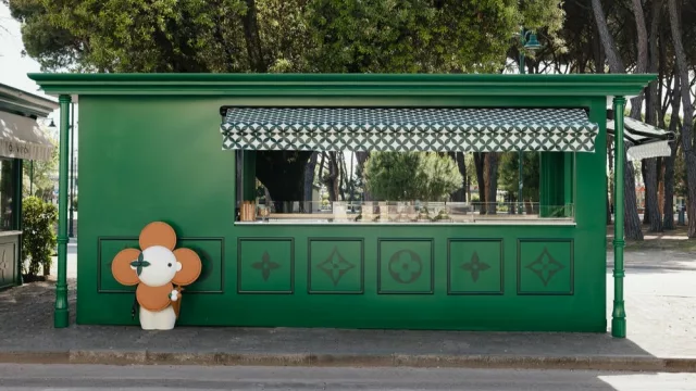 El proyecto, bautizado como El Viaje Extraordinario del Sabor, rinde homenaje a la tradición heladera italiana —de la mano de Galliano, una institución de Versilia— y al mismo tiempo refleja el universo creativo de Louis Vuitton. El quiosco, de estética vintage y tonos verdes que remiten al alma veraniega del balneario, está decorado con detalles del icónico Monogram y la presencia lúdica de Vivienne, la mascota de la Maison, que da la bienvenida a cada cliente con una sonrisa y una flor hecha oblea.