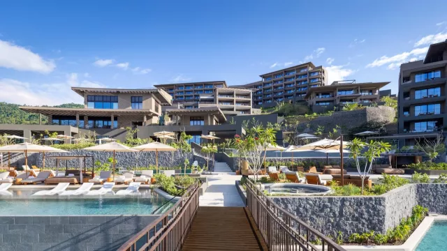 Las habitaciones (148) y suites (40) están pensadas como refugios contemporáneos donde el lujo y la calidez tropical se dan la mano. Balcones, terrazas, piscinas privadas y materiales naturales invitan a bajar un cambio y dejarse envolver por la belleza que rodea. El interiorismo se apoya en una paleta de tonos tierra, maderas nobles y textiles que evocan calma.